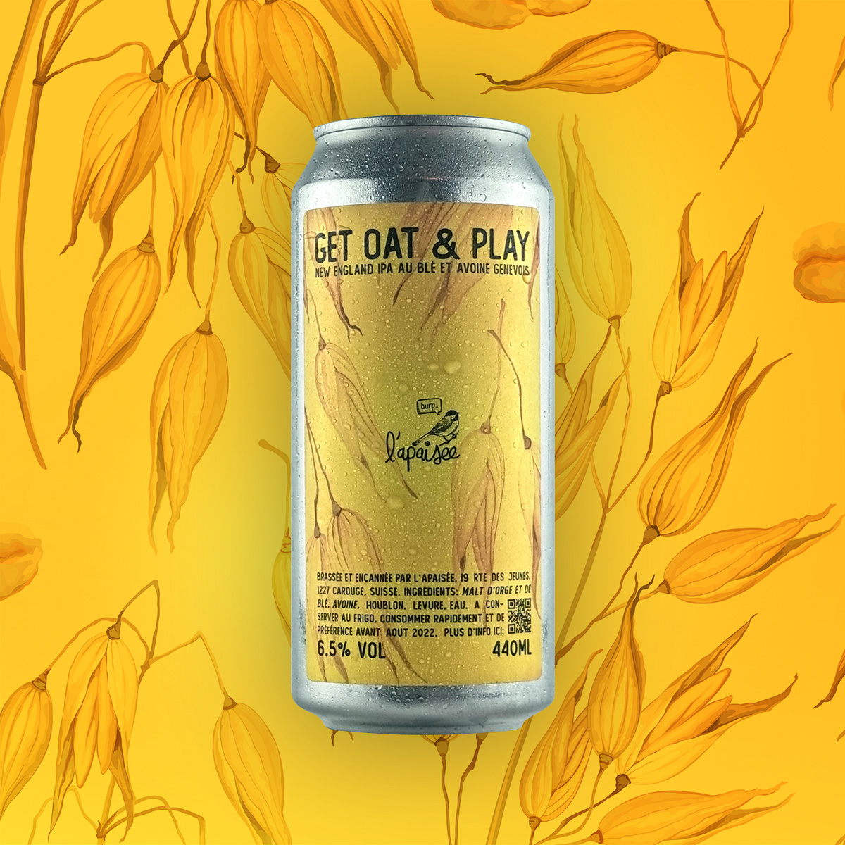 La nouvelle version de la Get Oat & Play, avec 30% d’avoine suisse et 15% de malt de blé genevois. ABV: 6.5%