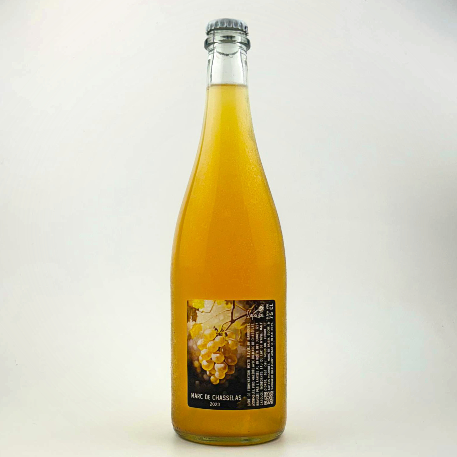 Assemblage de bières de fermentation mixte élevées en barriques puis assemblée. Macération pendants 3 mois avec du marc de Chasselas Genevois du domaine du Chambet. On y retrouve les marqueurs de ce cépage avec une acidité relativement faible et un côté tannique assez marqué.
