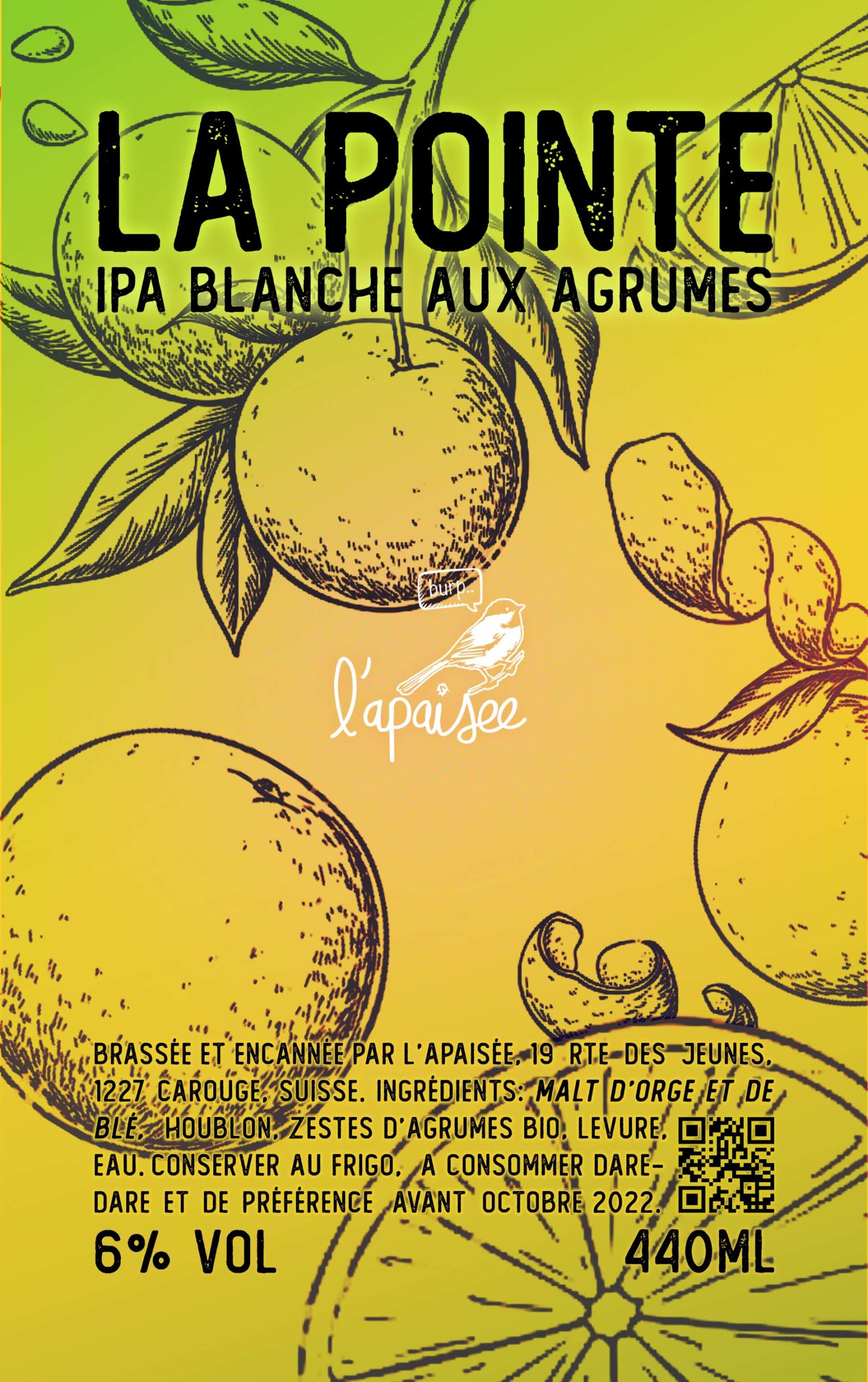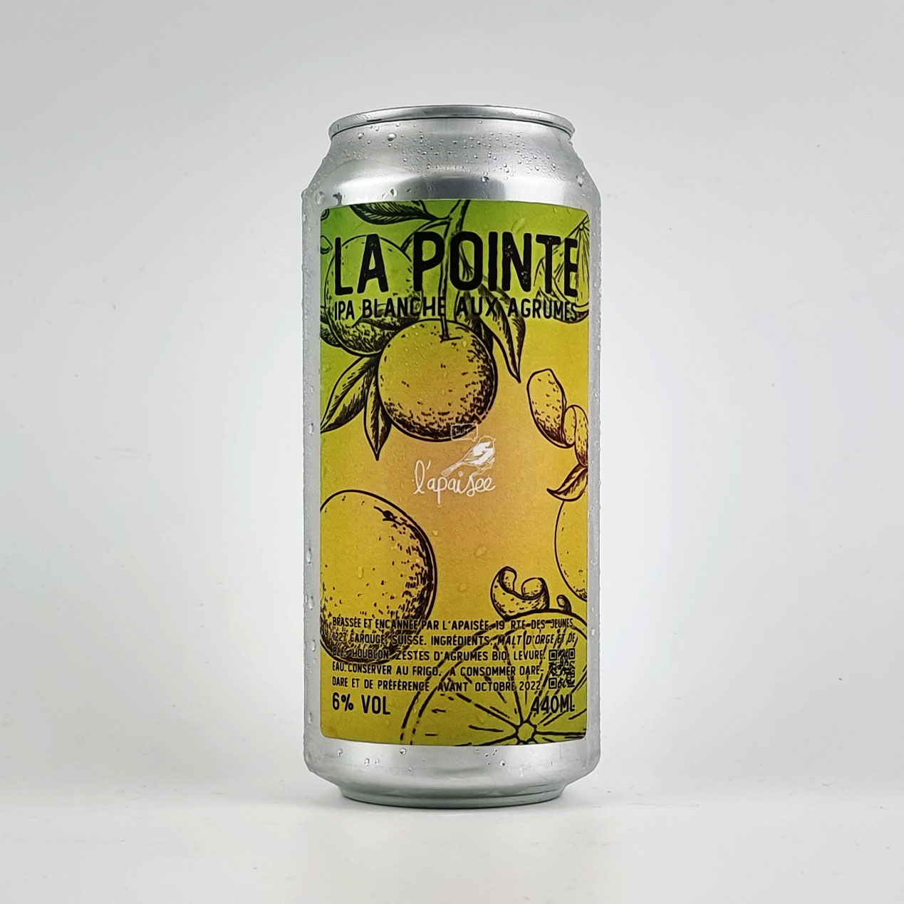 La classique blanche IPA aux zestes d’agrumes bio et houblon Citra désormais en canette 440ml. On parle de bière blanche pour dire que c’est une bière avec minimum 33% de blé malté. Par contre nous n’avons pas utilisé de levure de bière blanche classique donc on ne va pas retrouver les esters « bananes » et phénols…